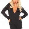 Brushed rib romper long johns with cheeky snap closure back flap. RED