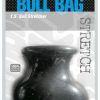 Part ball stretcher and part ball weight, the Bull Bag is two scrotum toys in one! Simply stretch the opening on the top of the Bull Bag and gently release over your entire scrotum and you are ready to go. The Bull Bag gives an incredibly pleasing 1.5 inches stretch and tug for that extra overload hanging right between your legs. The Bull Bag also works for giving your package that extra-large bulge under your favorite pair of jeans. The Bull Bag is made of Perfect Fit Blend which is a perfect mix of Silicone and Thermoplastic Rubber TPR that gives it an unbelievable stretch factor. The Bull Bag is safe with water based lubes. Wash thoroughly with mild soap and water and store item separately wrapped in a soft cloth or pouch. The Bull Bag is available in black and clear. Each sold separately. This product is porous and not compatible with latex products.