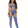 Callie Eyelash Lace Keyhole Halter Bralette W/panty – Teal Md
