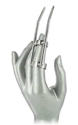 The Cat Claw Skin Scratcher will help you make your point in style. Wear this mischievous device like a ring on your finger and use it to tease and torment your partner. Twin stainless steel points extend beyond the tip of your finger and let you engage in wild sensation play with your lover. Run them over their chest, back, thighs, or anywhere else you think needs a little scratch. The possibilities are only limited by your imagination. Measurements: 4.25 inch overall length, Large Ring has 0.91 inch inner diameter, Small Ring has 0.79 inch inner diameter, Material: Stainless Steel, Disclaimer: These products as with all products on this site are supplied AS IS. No warranty is given either implied or expressed. Products are intended as novelty only, and no representation is made or implied as to their suitability or safety for any particular use. Purchasers use the products entirely at their own risk. The manufacturer or re-seller is not liable for any direct, indirect, incidental or consequential damage or loss howsoever arising caused by use or misuse of the products. This includes, but is not limited to, damage to the products and personal injury or damages due to use or misuse. Warning: This is a NEW item that is not in retail packaging, usually a plain box, wrapped in plastic or a poly bag.