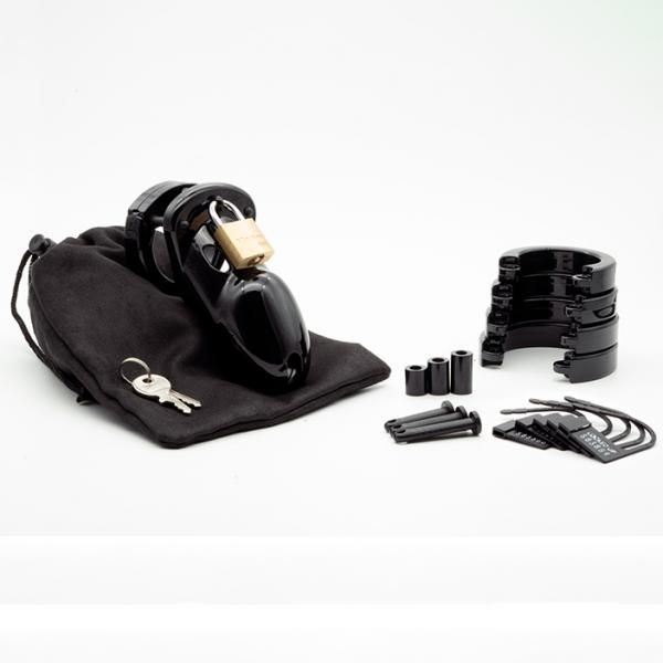 CB-3000 Black 3 inches Chastity Cage with Complete Kit from CBX Male Chastity. The original CB-3000 reimagined in our new black finish for all your dapper needs. Find comfort and security in this refined looking cock cage that your keyholder will love every time you put it on. 3 inches cock cage length. Made from Medical Grade Polycarbonate. LIghtweight, hypoallergenic and durable. Extremely comfortable ring design. Secure and reliable. Vented with functional openings for urination and easy cleaning. Kit comes with the following: CB-3000 Black Cock Cage. Multiple u-ring sizes for the perfect fit. Various locking pins and spacers for custom and secure fit. Strong Brass lock with 2 keys. 5 numbered plastic locks for safe TSA passage. Luxurious zippered carrying case. Sample Premium Silicone Lube.