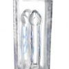 Measurements: 7.25 inches overall length, 6 .25 inches insertable length, 1.36 inches maximum insertable diameter. Material: Borosilicate Glass. Color Clear with Blue accents. Note requires (3) button cell batteries, included.