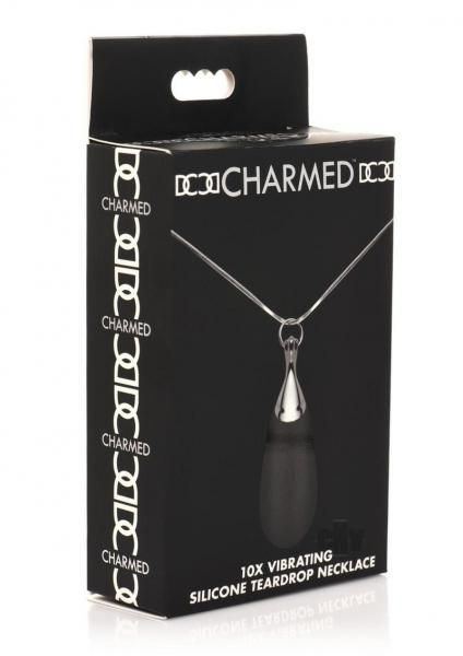 Combine fashion with foreplay to get this vibrating, teardrop necklace! Made out of silky smooth, phthalate-free, premium grade silicone, it is the preferred material for using on all your sexy parts! Use only with water-based lubricants for best results and enjoy a slick, smooth feeling against your sensitive, erogenous zones. Enhance your experience with 3 speeds and 7 patterns of vibration to choose from! This powerful little teardrop is going to get you wet! Take it in the shower, too! It`s rated as IPX6 for powerful jet streams. Do not submerge in water. To clean, use warm water and mild soap, then spray with a toy cleaner and wipe dry. All metal used is nickel-free. You`re always ready when you`ve got your favorite vibe around your neck! Take this discrete, sleek, fashion statement and add some lube to turn any sexy play into an enhanced experience! Use it on your nipples or below the waist, but do not use it internally. The powerful vibrations will awaken and excite your senses! Use it on yourself or a partner and enjoy! Measurements: Chain length: 35.5 inches.Teardrop pendant: 2.5 inches x 0.8 inches x 0.7 inches. Materials: Silicone, ABS plastic, zinc alloy Color: Black, silver Key Features:Vibrating Necklace: Enjoy this sleek, teardrop shaped necklace with 3 speeds and 7 patterns of powerful vibration!Premium Silicone and Metal: Made out of silky smooth, phthalate-free, premium silicone and nickel-free metal. Use only with water-based lubricants.Waterproof: Rated as IPX6 so it can handle powerful jet streams in a shower. Do not submerge under water.Rechargeable: Recharge using the magnetic end of the USB charger.