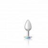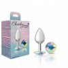 Cheeky Charms Round Clear Iridescent Silver Small Butt Plug from Viben. Cheeky Charms is a collection of vibrant, seductive metal anal plugs, each show casing a beautiful Acrylic Gem Stone. These butt plugs are great for temperature play and anyone who wants to decorate their rear entrance. Tapered for easy insertion and designed with a flared base and thin stem. Cheeky Charms anal plugs are comfortable to wear for an extended period of time. Wearable during intercourse to achieve a fuller feeling. Available in various unique colors and sizes. Cheeky Charms are the perfect booty jewelry for women, men, couples and also for solo play. Small, silver metal, tear drop shaped Anal Plug with sparkling Rainbow colored, round Acrylic Gem Stone. Hypoallergenic, nonporous, body safe, Nickel free, Aluminum Alloy, anal jewelry compatible with all lubricants. Easy to clean and dishwasher safe butt plugs. Available in various colors and three different sizes. Specifications: made using body safe materials. Nonporous smooth surface. Aluminum Alloy, Nickel free. Ideal for temperature play. Tapered, Tear Drop shape. Thin stem. Flared base Anal Plug. Clear Iridescent Acrylic Gem Stone. Light weight. Easy to clean. Waterproof, non-vibrating plug. RoHS Certified. Prop 65 Compliant. 1 year Limited Warranty. Measurements: overall length 2.78 inches, insertion length 1.65 inches, circumference: 3.36 inches around. Material: Aluminum Alloy Plug, Acrylic Gem Stone. Categories: Anal Toys, Beginner Prostate Massagers, P-Spot Stimulators, Sex Toys for Couples, Health and Beauty Aids, Small, Medium Butt Plugs. Restricted, Amazon Restricted. 2022.