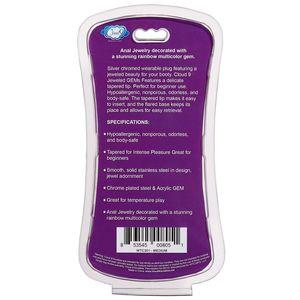 Cloud 9 Gems Silver Chromed Anal Plug Medium. Cloud 9 Novelties Anal Gems Jeweled Silver Chromed Anal Plug. Anal Jewelry decorated with a stunning rainbow multicolor gem. Silver chromed wearable butt plug featuring a jeweled beauty for your booty. Cloud 9 Jeweled Gems. Features a delicate tapered tip. Perfect for beginner use. Hypoallergenic, nonporous, odorless, and body safe. The tapered tip makes it easy to insert, and the flared base keeps its place and allows for easy retrieval. The sparkling jewel makes playtime fun. This Cloud 9 Jeweled Anal Plug is excellent for temperature play when you prepare it in hot or cold water.