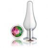 Cloud 9 Gems Silver Chrome Tall Anal Plug Small. New Gems Silver Chromed Anal Plug Tall Tapered Design. Plug with anal jewelry decorated with a stunning rainbow multicolored gem. Hypoallergenic, nonporous, odorless and body safe. Tapered for intense pleasure. Great for beginners. Anal Jewelry decorated with a stunning rainbow multicolor gem. Silver chromed wearable plug featuring a jeweled beauty for your booty. Cloud 9 Jeweled Gems. Features a delicate tapered tip. Perfect for beginner use. Hypoallergenic, nonporous, odorless, and body safe. The tapered tip makes it easy to insert, and the flared base keeps its place and allows for easy retrieval. The sparkling jewel makes playtime fun. This Cloud 9 Jeweled Anal Plug is excellent for temperature play when you prepare it in hot or cold water. This Cloud 9 Gem anal plug is both visually stunning and ideal for stimulating anal play.