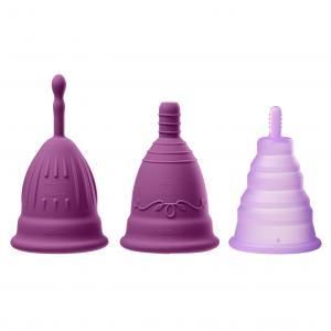 Cloud 9 Health and Wellnes Reusable Menstrual Cups 3 Pack with Bonus Travel Cup and Case. Cups give you comfortable, safe, odorless eco-friendly period up to 12 hours in a day. The kit includes 1 valve cap with stem, 1 non-valve cup and 1 collapsible cup for on the go use. Made of soft phthalate free materials Silicone, these premium cups are designed with multiple seal points to prevent leaks and a soft flexible stem for ultra comfort. It is reliable, reusable comfortable safe. Features: flexible cups with muliple seals to prevent leaks. No spill rim and easy removable stem. Valve cup included. Up to 12 hours of hassle free protection. Bonus travel cup included with storage space. Made using body safe, phthalate free materials Silicone. MAPS price 31.95.
