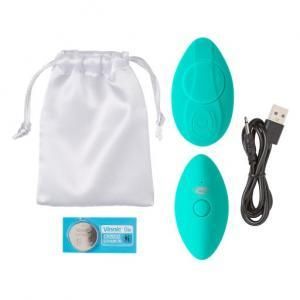 Cloud 9 Panty Pleasures Magnetic Panty Vibe Teal from Cloud Nine Novelties. Wearable Vibe. Remote control. Panty not included. The Cloud 9 Novelties Pleasure Panty vibrator is ergonomically shaped to be worn either inside the panty: held in place by a strong magnet or can be used as a palm vibe. With 10 strong pulsations for ultimate pleasure, the Pleasure Panty vibe also comes with a remote control with a 100 feet range. Whisper quiet, this panty vibe allows users to have fun in public! Features: ergonomic design with contoured point. 10 vibration patterns with a whisper quiet motor. Fixes in place with strong magnet. Made using body safe, phthalate free Premium Silicone. Remote Control with 100 feet range. Bonus silk storage pouch included. Categories: Rechargeable Vibrators, Palm Size Massagers, Sex Toys for Women, Vibrating Underwear. 2022.