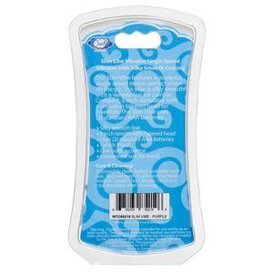 Cloud 9 Slimline Vibe Purple. Slimline Vibrator is a single speed with a silky smooth coating. Cloud 9 Slimline Vibe features a powerful, single speed motor, perfect when on the go. This vibe is silky smooth with a velvety feel for comfort. Compact, 5 inches stimulator with a sensuous tapered head for insertion. The Slim Vibe uses 2 standard AAA batteries.