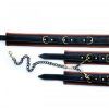 Lock up your slave in this attractive and unique collar to wrist restraint set. This three in one bondage gear contains a luxurious vegan friendly collar with three D-rings, two cuffs with a D-ring each, and connector chains for the cuffs and collar. The comfortable padding and secure, durable material mean that you can keep your plaything captive for as long as you desire. The duotone, brass coated hooks, and gold accented embellishments create an elegant piece of equipment that will last through many play sessions.