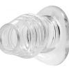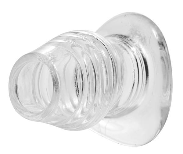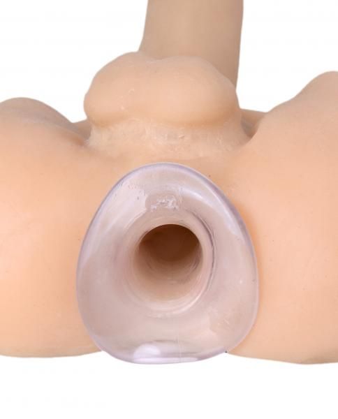 This unique butt plug has an exciting new feature that allows unrestricted access to their innermost areas! The hollow plug is made of a semi-stretchy material that is soft enough to fuck while staying strong enough to keep their ass spread open wide and ready. The flared middle and tapered base keeps it in place, even during vigorous use. You will thrill in the change in sensation as you reach the end of the plug and hit flesh. The lip of the plug will glide over your cock head, and the center has ribbing on the inside for even more pleasurable sensation. Use it for extended ass play while avoiding chafing and discomfort, tightening up loose holes, as a control device, or just stick your dick in and ream them good! The hollow tunnel in the middle also allows you to control their bodily functions for the ultimate in diaper play. This plug keeps them wide open and unable to control themselves. Also great for enema play or medical examinations. You are only limited by your imagination. What will you use it for? Measurements: 4.25 inches in total length, 3.5 insertable, 2.5 inches outer diameter, 1.5 inches inner diameter. Material: TPE. Color: Clear Warning: This is a NEW item that is not in retail packaging, usually a plain box, wrapped in plastic or a poly bag.