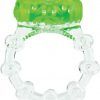 Features: long lasting vibrating ring for his and her pleasure. Powerful vibrating motor with super stretchy band. Pleasure ticklers for increased clitoral stimulation. Pleasure knobs around the ring boost his experience. Additional information: disposable. 30+ minutes battery life. One size fits most men. SEBS silicone. Latex free. Phthalate free. Wireless vibrations. Color Green.