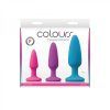 Colours Trainer Kit`s collection of 3 fun and colorful plugs is made of liquid platinum silicone. The smooth and pliable plugs feature an elegant and supportive base, long neck and tapered tip for easy ion. Available in varied colors and sizes. Suitable with all lubricants.