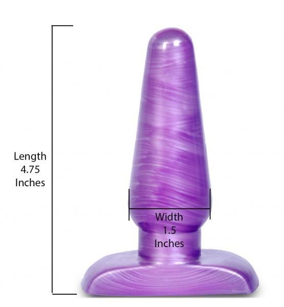 B Yours Medium Cosmic Plug. The Medium Cosmic Plug is a great step up in anal exploration! Its swirly purple pattern is sweet and sexy. Soft enough for comfortable, gentle use but firm enough for easy insertion. The wide, flexible base below a narrower neck makes it safe and secure. Made of body safe PVC, Cosmic Plugs are phthalate and latex free.