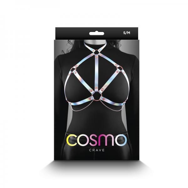 Dress up your assets with Cosmo`s stylish chest harness.andnbsp;Accented with rose gold nickel-free hardware and adjustable straps for the perfect fit. Made from easy to clean vinyl. Cosmo harnesses are available in a variety of styles and sizes.