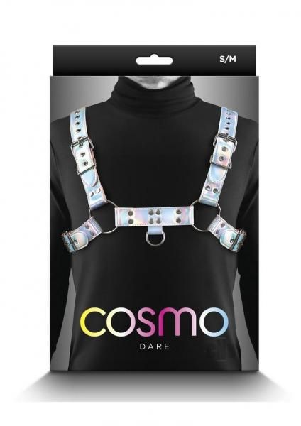 Dress up your assets with Cosmo`s stylish chest harness.andnbsp;Accented with silver nickel-free hardware and adjustable straps for the perfect fit. Made from easy to clean vinyl. Cosmo harnesses are available in a variety of styles and sizes.