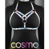 Dress up your assets with Cosmo`s stylish chest harness.andnbsp;Accented with rose gold nickel-free hardware and adjustable straps for the perfect fit. Made from easy to clean vinyl. Cosmo harnesses are available in a variety of styles and sizes.