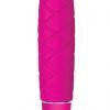 Molded from pure body safe silicone, Cozi Mini intrigues with its fun cushiony pattern and smooth satin finish. Craving a different sensation? Just remove the silicone sleeve and it becomes a sleek mini vibe. Cozi Mini has two speeds of vibration and it is waterproof. Enjoy Cozi Mini wherever and however you want! Fuchsia. Length 4.75 inches. Insertable length 3.5 inches. Width 1.1 inches.