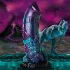 Key Features: Fantasy Dildo: This Creature Cocks dildo is an iridescent, magical green dragon with a long neck. Along the neck are ribbed scales. The head is shaped like a dragon head with lifted brows. THe shaft curves gently and has a base of splashing waves.
