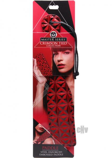 Perfect for disciplining your naughty plaything, this stiff paddle features a steel enforced design. The exterior is embossed with a red and black diamond pattern on one side, and a smooth faux leather on the other. The handle has a loop for hanging or to wrap around your wrist while you administer their punishment.