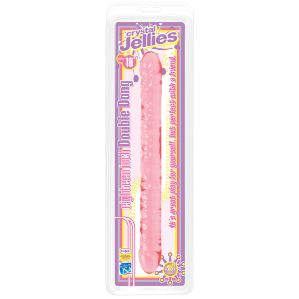 We dare you to try Doc Johnson`s newest release. In fact, We Double Dong dare you! Go deep with Doc Johnson`s longest Double Dong yet. At 18 inches you`ll reach your pleasurable limits. Pink or Clear, front or rear; the Double Dong is made with Sil-A-Gel formulated Jelly. The Crystal Jellies Double Dong is 100% Made in the USA using our exclusive anti-bacterial rubber. Support your country and your XXXXX.