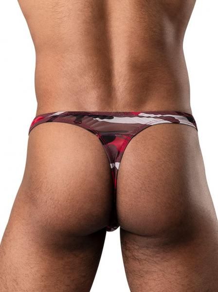 Stretch thong with a camouflage print and a supportive contoured pouch From Male Power, 90% Polyester, 10% SpandexS/MRED