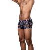 Stretch mini short with a camouflage print, a low-cut elastic waistband and a contour pouch. 90% Polyester, 10% SpandexXLRED