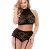 Curve Katia Halter Bra & Gartered Panties Black 3X/4X