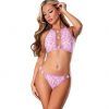 From the Exposed by Magic Silk collection, this style includes: A halter mesh bralette featuring blacklight reactive retro daisy print, looped elastic detail with bright lilac elastics, daisy beads, swan hook closure at the neck, hook & eye closure at the back, and a matching cheeky panty.DAISY HALTER BRA & PANTY SET DAISY L/XL