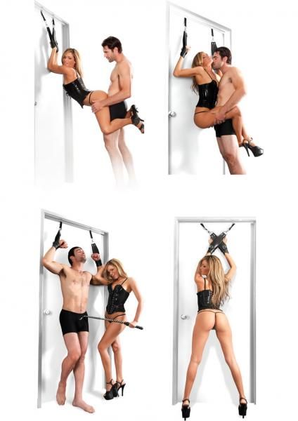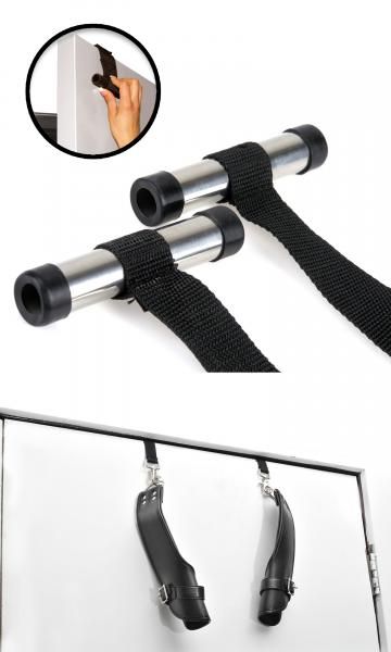Turn any ordinary door into an erotic bondage playground with these incredible Deluxe Door Cuffs. Simply drape 2 metal tubes over the top of an open door, close and lock the door, and your partner is securely restrained between the door and the door frame. The sturdy metal tubes hold securely when the door is closed without scuffing or damaging the door, and there is no need for modification or fancy hardware.