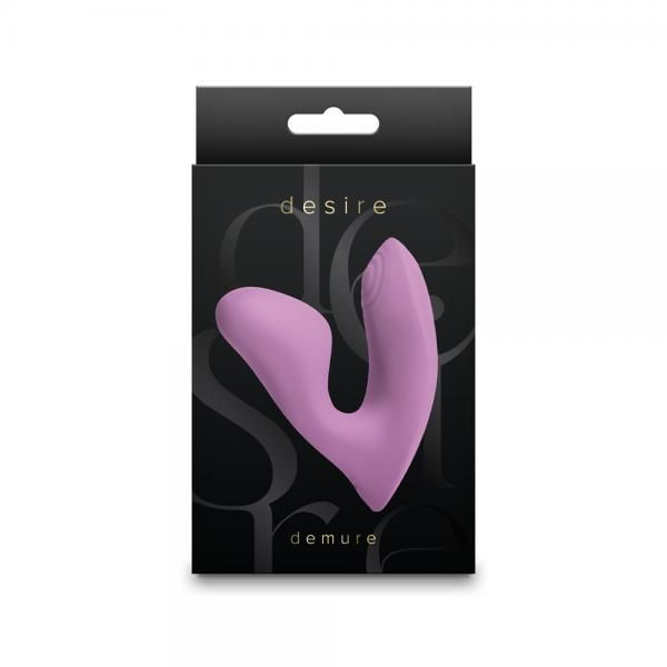 Demure by Desire A discreet, travel-friendly, and wearable vibrator featuring dual motors for intense vaginal and clitoral stimulation. Demure is made of premium body-safe silicone and textured for extra pleasure. Rechargeable. 3 speeds, 7 functions and 10 modes. Suitable with all lubricants, including silicone.