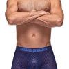 Sheer Stretch Mesh Fabric with diamond shaped panes throughout. Branded printed waistband.