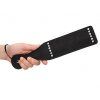 Diamond Studded Paddle Black from Shots Toys. Get ready to please or receive in the intense Diamond BDSM line. Glamorously tough, the perfect combination of firm faux leather and glamorous diamond studs will turn you into the star attraction of the night. Get spanked hard, and get fucked even harder. A Paddle will cause the right amount of pain, and this Paddle will do that job perfectly. Sturdy and comfortable, this Paddle is a delicious addition to your BDSM set. The perfect addition to a very hot kind of trouble. It is time to set your dark side free.