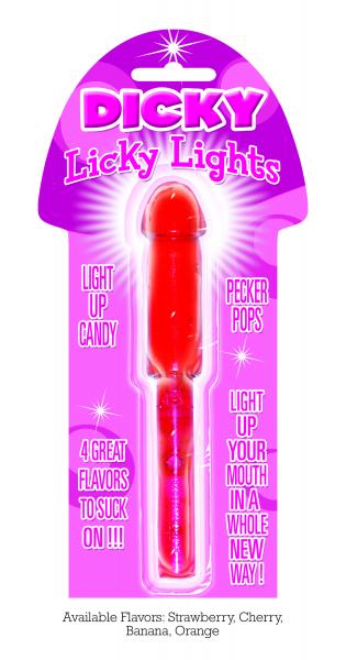 Now you can really Light Up the night with these Illuminating Dicky Licky Light Penis Candy Pops! Light illuminates from the handle inside the candy pop. Pop one in your mouth and watch your mouth glow with excitement! Causes Crazy Laughter at parties, Night Clubs, raves, or any wild night adventure! Flavor Cherry.