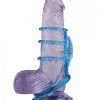 Doctor Love Zinger Vibrating Sleeve Blue Batteries and pouch included. 11, 000 vibrations per minute. On and off switch. Easy to clean. Comfortable. One size fits most. Sleeve measures 2.25 inches wide by 3 inches in length. Top ring measures 1.25 inches in diameter. Bottom ring is 2 inches in diameter. Rings are textured for added stimulation. Please note shown on dildo, not included.