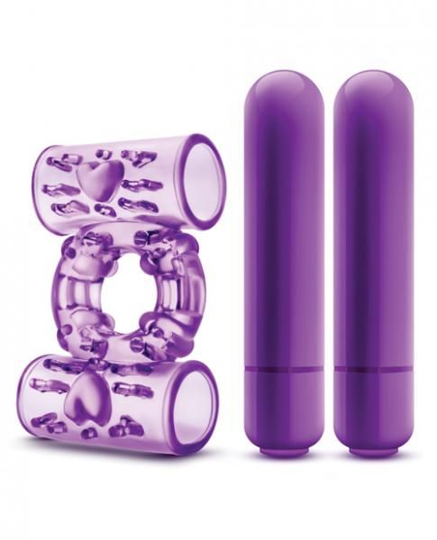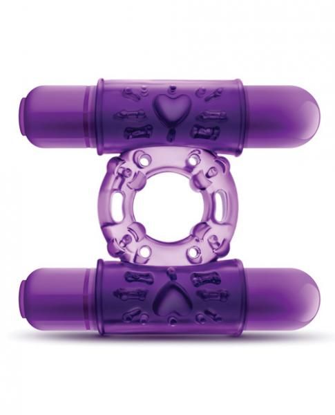 Play With Me Double Play Dual Vibrating Cock Ring Purple. Discover intense pleasure during lovemaking with Double Play Vibrating Cock Ring. Each of the vibes is powered by one AAA battery. Your ring features 2 bullets that emit deep thumping vibrations that will please both partners simultaneously. Stretch the ring around the base of the penis and push the button to start the vibrations. Use the ring and bullet together, use just the bullet, or use just the ring. The perfect couples toy and the perfect solo toy as well.