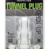 Perfect Fit Brand Products are sold, and intended for use strictly as adult novelty toys for entertainment. They are not intended for medical use and have not been clinically tested. No medical claims are warranted or implied by the use of these products. Dimensions for Large size double tunnel plug 4.5 inches insertion length by 8.8 inches in circumference. The Double Tunnel Plug Clear Large from Perfect Fit Brands.