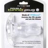 The Perfect Fit Double Tunnel Plug features two plugs that slightly taper to the tip which makes it one of the most innovative butt plugs available on the market. In addition to being a standard butt plug, you can use the tunnel hole that goes all the way through the plug for various play including lube insertion, fingers, watersports and toys. The clear version also makes it possible to see right into the other person. It is made of special blend of silicone and TPR called PF Blend. The Tunnel Butt Plug is safe with all lubes. This product is not compatible with Latex products. Wash thoroughly with mild soap and water. Double Tunnel Medium Plug insertable length 3.5 inches, circumference 6.9 inches.