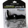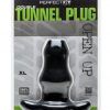 Perfect Fit Brand Products are sold, and intended for use strictly as adult novelty toys for entertainment. They are not intended for medical use and have not been clinically tested. No medical claims are warranted or implied by the use of these products. Dimensions for Extra Large size double tunnel plug 5 inches insertion length by 10.0 inches in circumference. The Double Tunnel Plug Black Extra Large from Perfect Fit Brands.