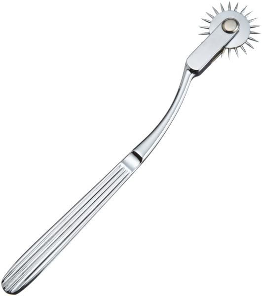 Dr Clockwork Wartenberg Wheel. No one who appreciates toys should be without a Wartenberg Pinwheel! Sometimes referred to as a neurological pinwheel, neuro wheel or simply a pinwheel. Sensations from this handy toy range from a scintillatingly sensual prickle to a wickedly sharp pin pricks, depending on how much pressure is applied. Made of High Quality Stainless Steel, these pinwheels, which measure approximately 7 Inches long, possess grooved handles and a rolling head of extremely sharp points. Each comes in a vinyl case.
