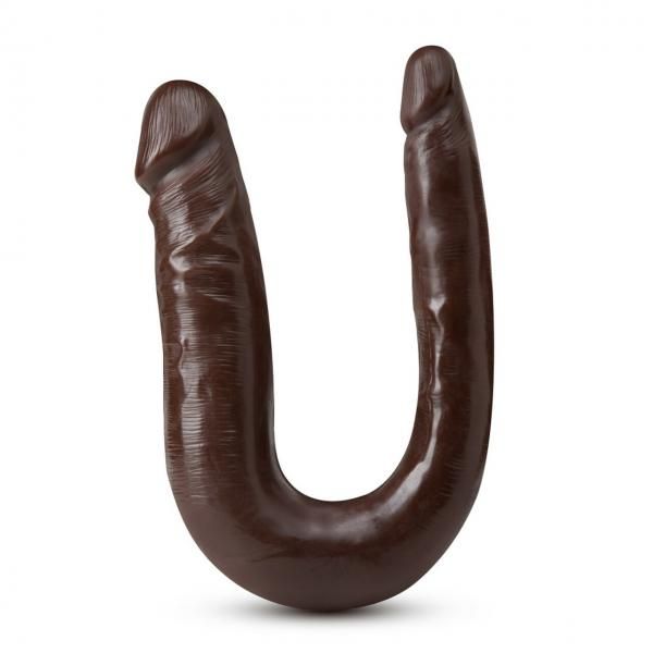 Dr. Skin Mini Double Dong Chocolate Brown from Blush Novelties. The doctor will see you now! The Dr. Skin Mini Double Dong is open for practice, ready to aid you in exploring creative possibilities. This soft, U-shaped toy flexes and curves, making it ideal for double penetration or for comfortable use between partners. Grip its U-shape curve and move both heads for blended pleasure! Featuring 2 different sized ends for comfort: slim on one side and average girth on the other. Made of our lab tested non-porous PVC, Dr. Skin toys are body safe, phthalate free. Easy to clean. Features: soft, lifelike feel with realistic detailing. U-Shape Dong is an easy grip handle. Made of non-porous PVC. Contains no fragrances, phthalates or latex. Size 12.5 inches in total length, 1 inch width narrow end by 1.5 inches width wide end. Ideal for double penetration.