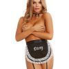 “French Maid Fantasy”stretch knit underwire teddy with ruffled lace details, adjustable shoulder straps, and open crotch.