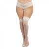 Sheer thigh-highs. Stay-up silicone lace top. Shown with Style 1736 thong; sold separately.
