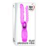 Adam and Eve Pleasure Vibe Pink. Double your stimulation with this naughty vibe. Fulfill all of your wickedest double penetration fantasies with this sizzling hot double penetration vibrator! The Adam and Eve Dual Pleasure Vibe thrills in front with a realistic 4.75 inches shaft, while in back a separate 4.5 inches string of six firm anal beads massages your deepest backdoor hot spots. Powerful multi-speed vibrations buzz from the centrally located motor. The perfect toy for the Dual Penetration curious!