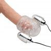 Target the head of your penis for a vibrating massage! With super powered twin vibrating bullets and a super stretchy, head encompassing sleeve, you can experience pin pointed stimulation on one of the most sensitive areas of your body! Just slip the cup over the head of your cock and control the level of vibration with the easy to use speed dial on the wired controller. Boasting a strong motor, these two bullets help surround the tip of your cock in toe curling buzzing bliss. Inside the cup are dozens of extra large tickler nubs that will further tease your towards orgasm. How much pleasure can your helmet handle?
