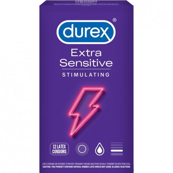 Durex Extra Sensitive Stimulating Latex Condoms 12 Count from Paradise Marketing. Features: ribbed and dotted condoms plus tingling lubricant for a stimulating long lasting experience. Ribbed and dotted for enhanced stimulation. Distinct texture combination designed to increase stimulation for you and your partner. World’s #1 Condom Brand: With over 80 years of experience, condom. Electronically tested. Each Durex condom is 100% electronically tested and goes through five quality tests. Pleasant scent. Features a pleasant scent. Discreet delivery. Delivered in discreet packaging with no indication of parcel contents. Warnings: this product contains natural rubber latex which may cause allergic reactions. Do not use oil based lubricants, such as petroleum jelly, vegetable/mineral oils or cold cream, since these may damage the latex condom. This product contains natural rubber latex which may cause allergic reactions. If you are allergic to natural rubber latex products, consult your doctor for advice before use. Directions: for maximum benefit, carefully follow the condom instructions inside this package. Ingredients transparent and lubricated natural rubber latex condoms which are responsibly sourced.
