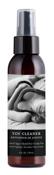 Earthly Body Hemp Seed Toy Cleaner 4 fluid ounces. It uses a unique combination of cleaning agents and essential oils to really get the toy clean without damaging it. In 2016, the FDA banned 17 ingredients from hand washes and toy cleaners and this product is fully compliant with that.