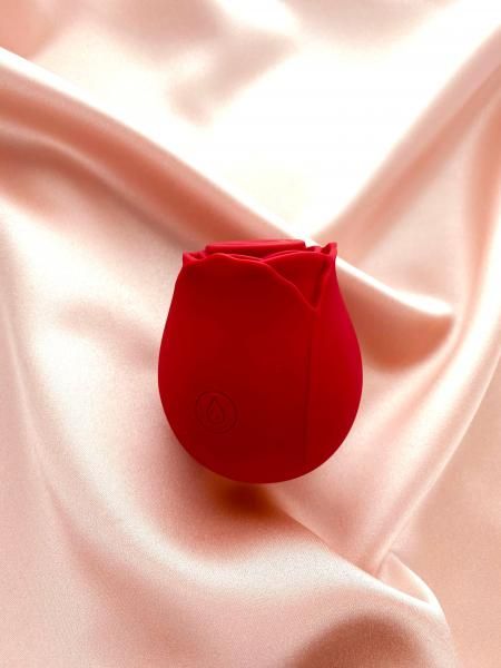 Edonista Rosa Clitoral Suction Stimulator Red Rose. Experience pleasure with Rosa: the perfect companion for your sensitive areas. With 10 delightful air pulse vibrating patterns, Rosa offers careful stimulation without direct intensity. Whether on your clitoris, nipples, labia, or your choice, place Rosa on the desired area and let its delicate breeze take you to new heights of bliss. Crafted from velvety silicone for a luxurious touch and fully waterproof for versatile use, Rosa ensures a gentle and enjoyable experience for your intimate moments.