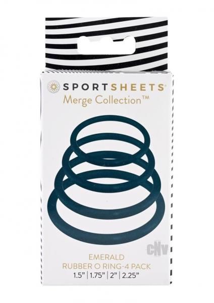 Emerald Green O-Ring 4 Pack from Sportsheets. The Sportsheets Merge Collection Rubber O-Rings 4-pack are firm yet stretchy, latex free rings in sizes 1.5 inches, 1.75 inches, 2 inches and 2.25 inches, giving you choices to personalize the ideal size and tightness that work best for your body. Mix and match sizes and vibrant colors to stabilize the base of dildos, wear on your penis and testicles to enhance stamina or to simply brighten up your strap on play. Merge with pleasure using the Merge Collections vibrant pack of O-Rings. Compatible with all interchangeable Strap Ons. Features: mix and match sizes and vibrant colors to stabilize the base of dildos. Wear on your penis and testicles to enhance stamina. Brighten up your strap on play. Limited Lifetime Warranty. Product dimensions: 1.5 inches O-Ring. 1.75 inches O-Ring. 2 inches O-Ring. 2.25 inches O-Ring. In the box: four pack of rubber O-Rings. Materials 100% Nitrile, 70 NBR rubber latex free. Video. 2021.