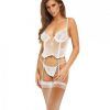 Feel ultra sexy in this exquisite bra set featuring open cups with underwire and a scalloped lace underbust, strappy details, criss-cross bust straps, adjustable spaghetti straps, a hook and eye back closure, and a matching panty with an open crotch, strappy sides, a criss-cross strappy back, and a thong cut back.